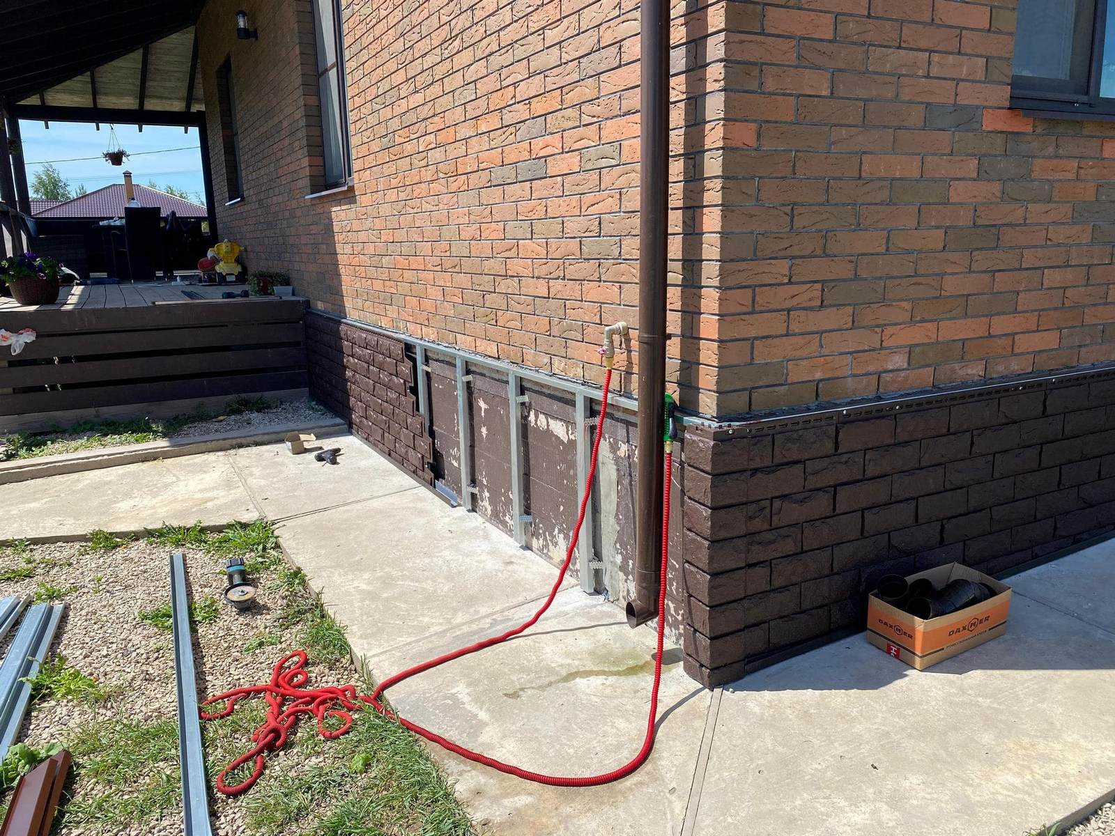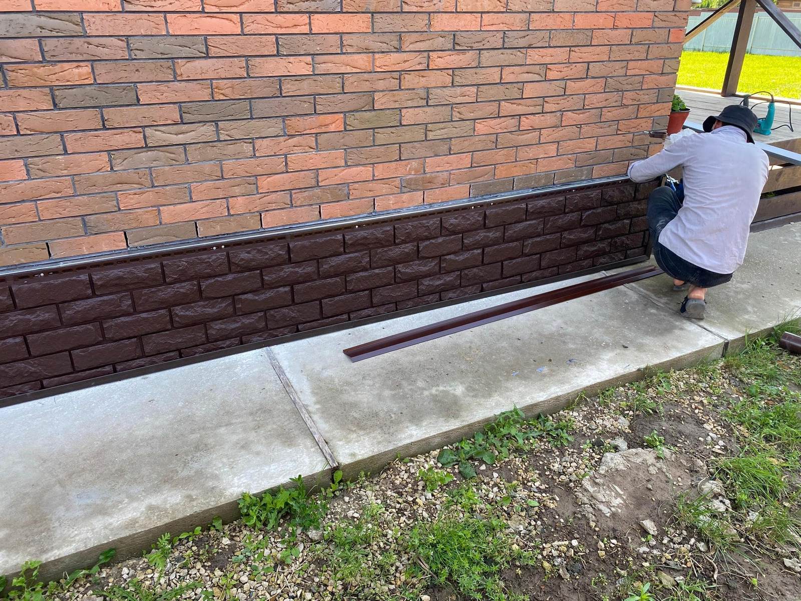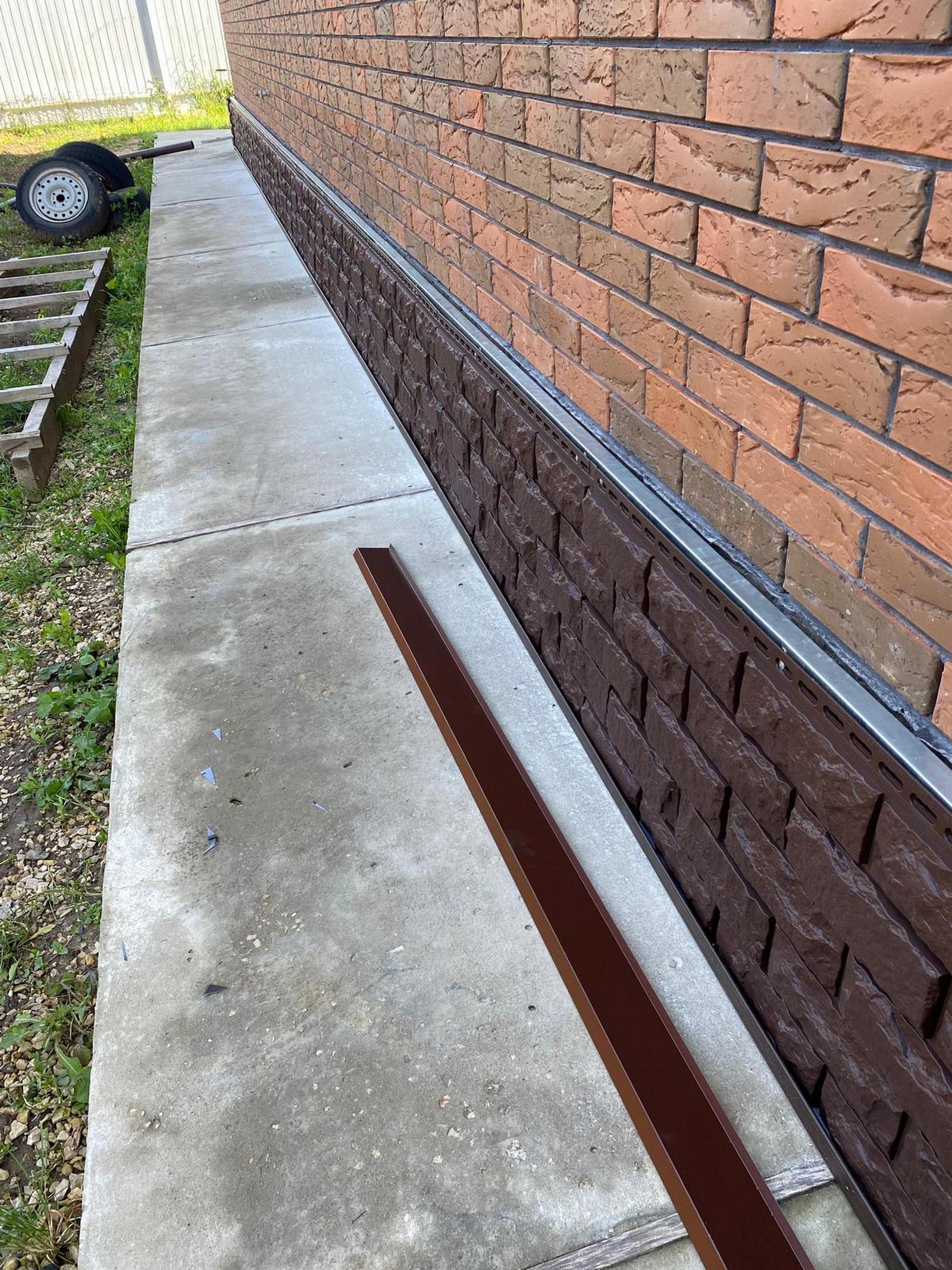 - Устройство монтажного узла с отливом для отделения цоколя от кирпичной кладки стены.