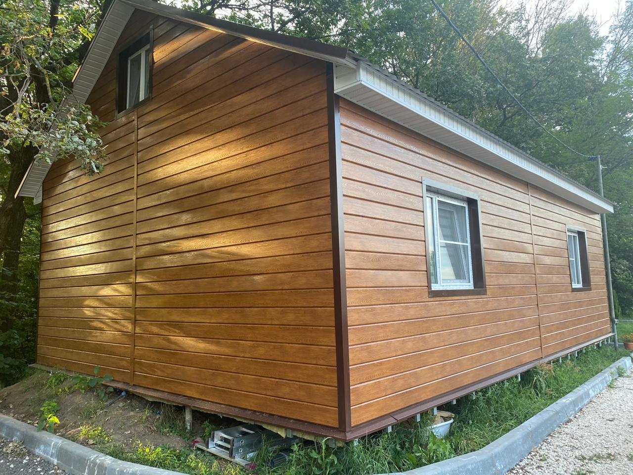 Проект предполагает комплексное решение по утеплению и облицовке дома. На подготовленный металлический каркас устанавливается слой минераловатного утеплителя и ветровлагозащитная мембрана, после чего монтируется финишная облицовка из металлического сайдинга. Завершающими этапами являются монтаж околооконных планок для герметичности примыканий и подшивка карнизных свесов софитом для обеспечения вентиляции подкровельного пространства и защиты элементов крыши.