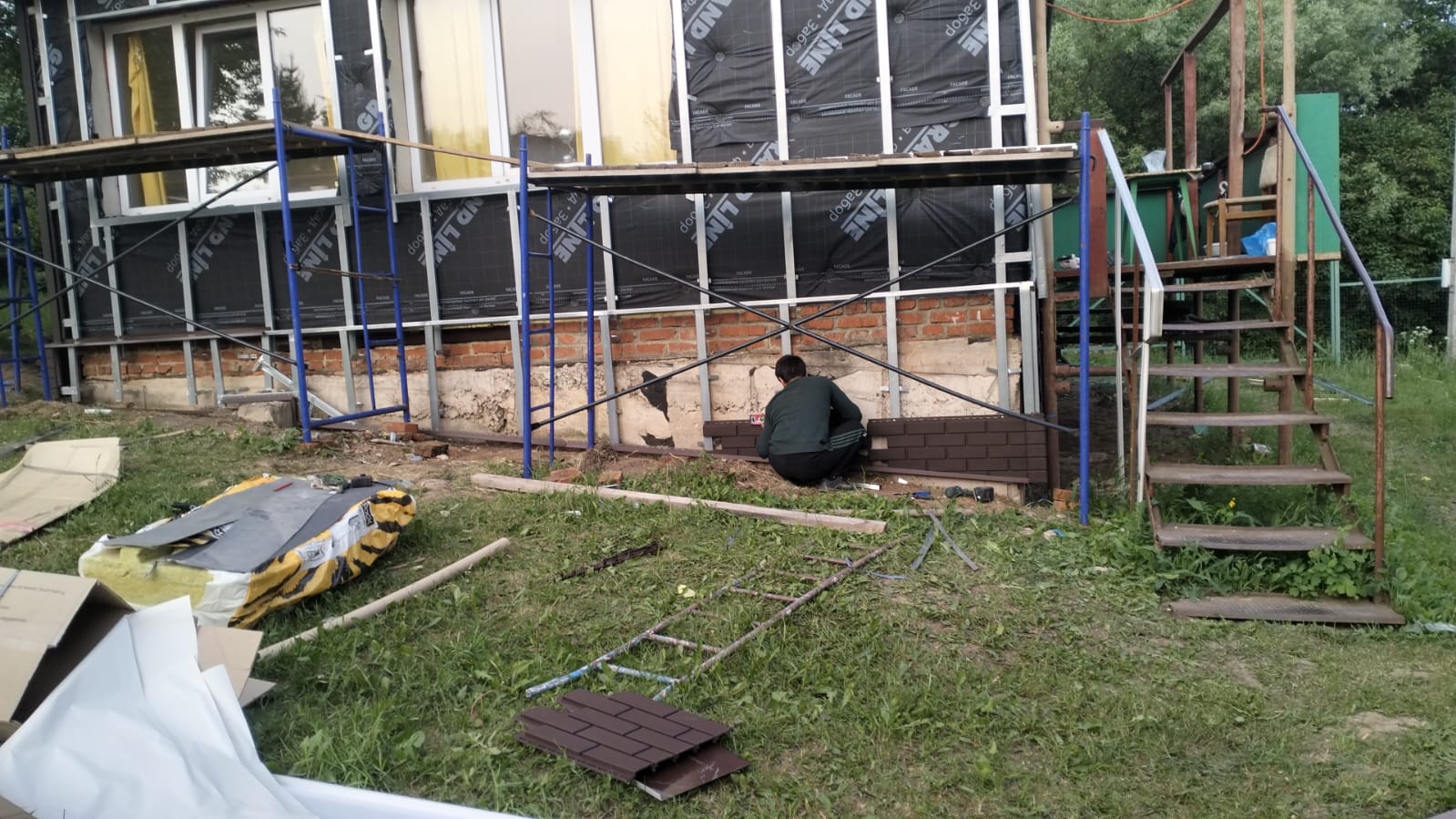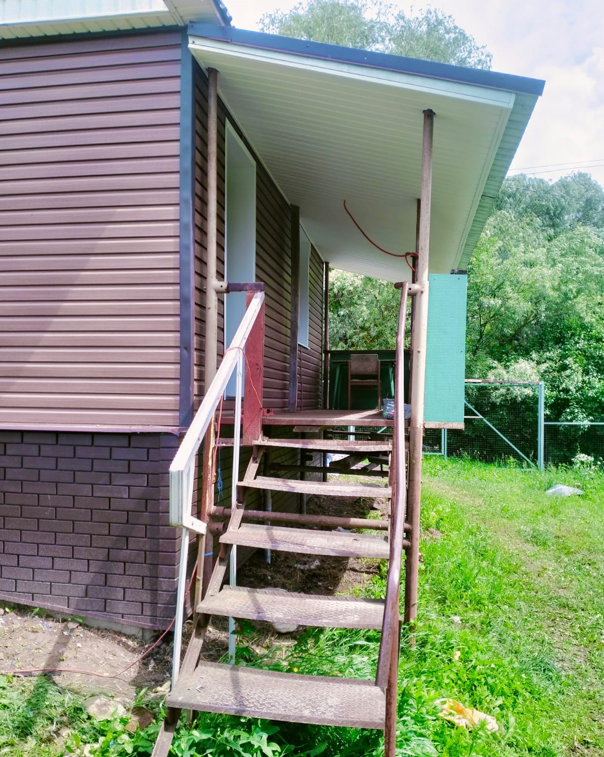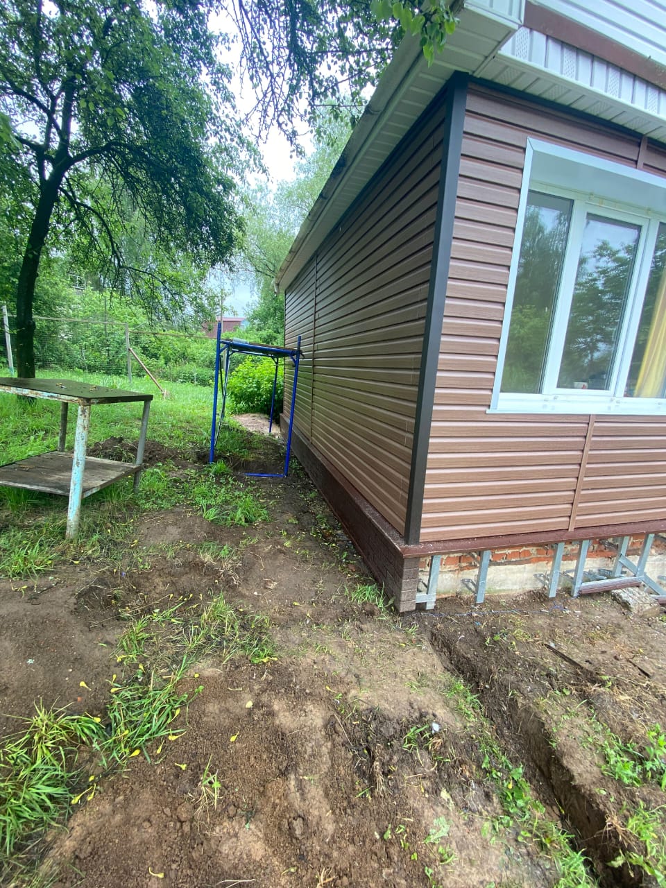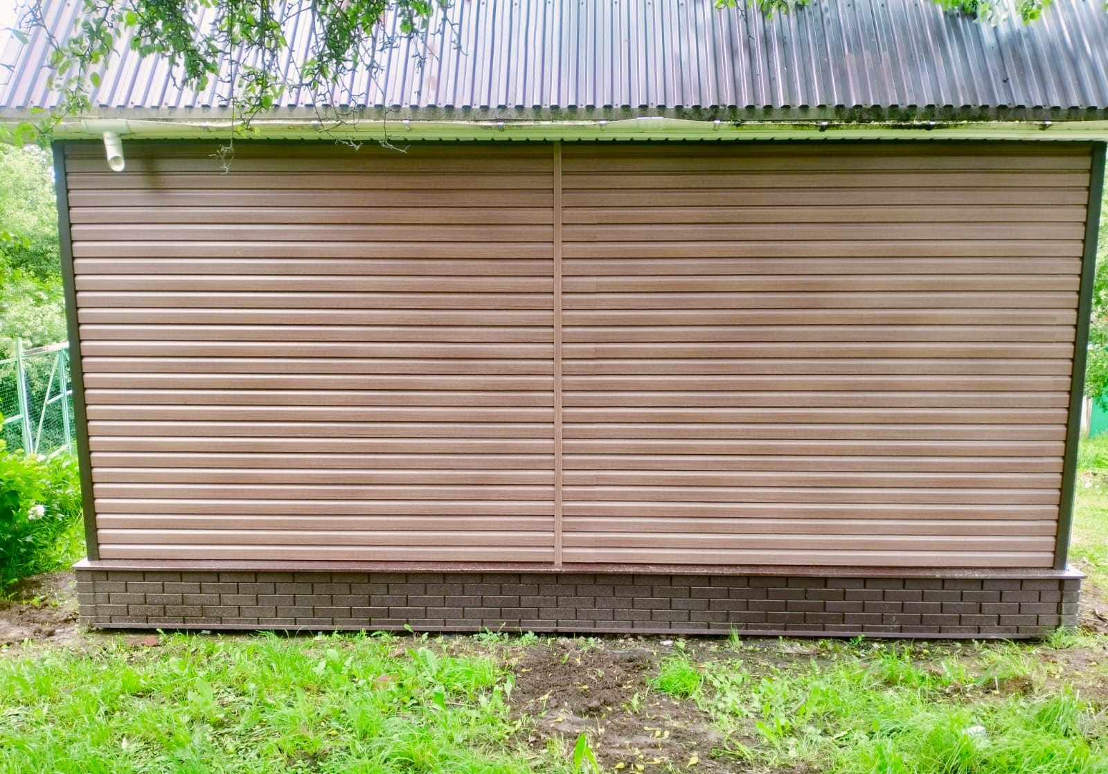 - Цоколь защищен и облицован фасадными панелями.