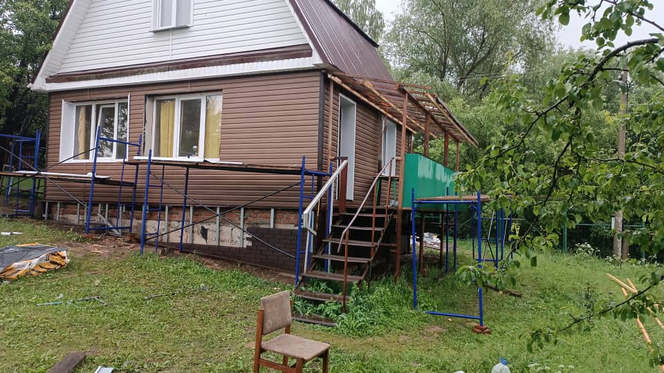 - Каркас навеса входной группы переделан, его нижняя плоскость подшита софитом.