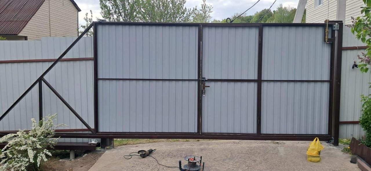 - Производство каркаса откатных ворот со встроенной калиткой.